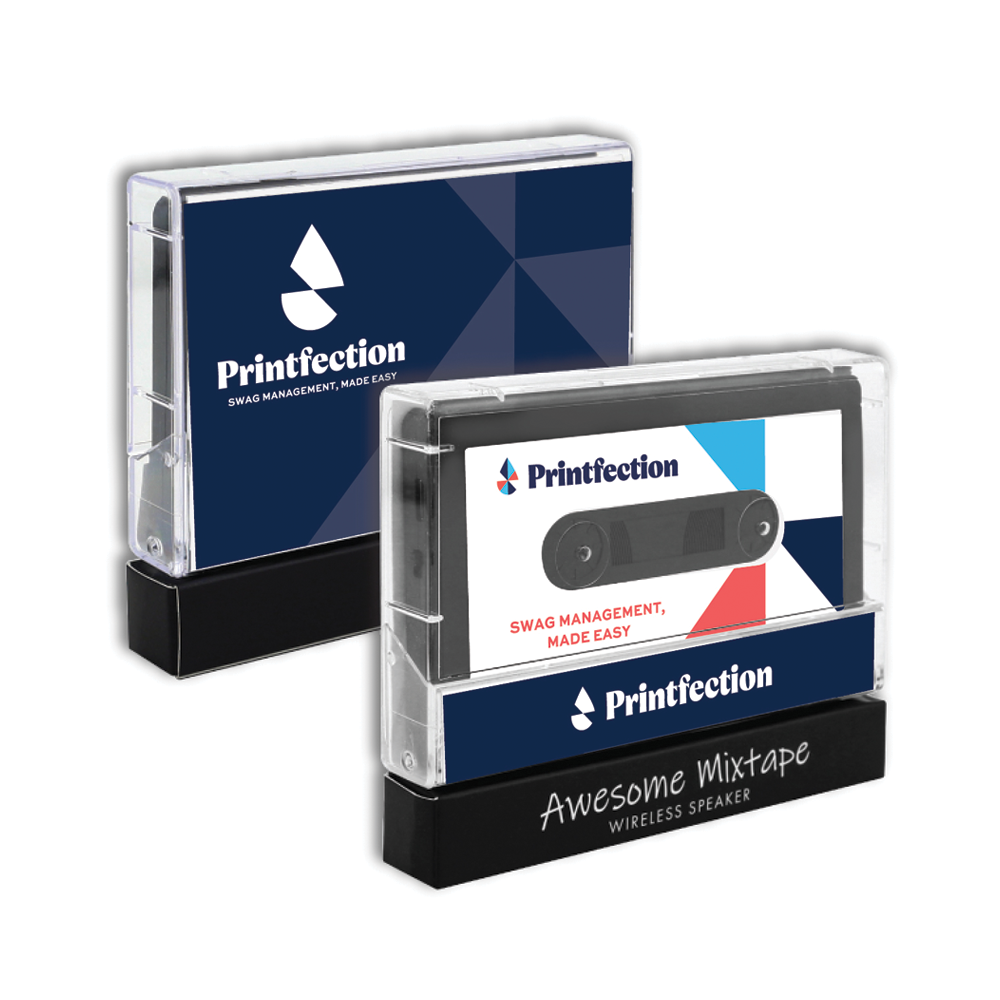 - Make it as custom as you’d like with a full-color print on the front and back of the speaker, as well as full color packaging in the plastic case