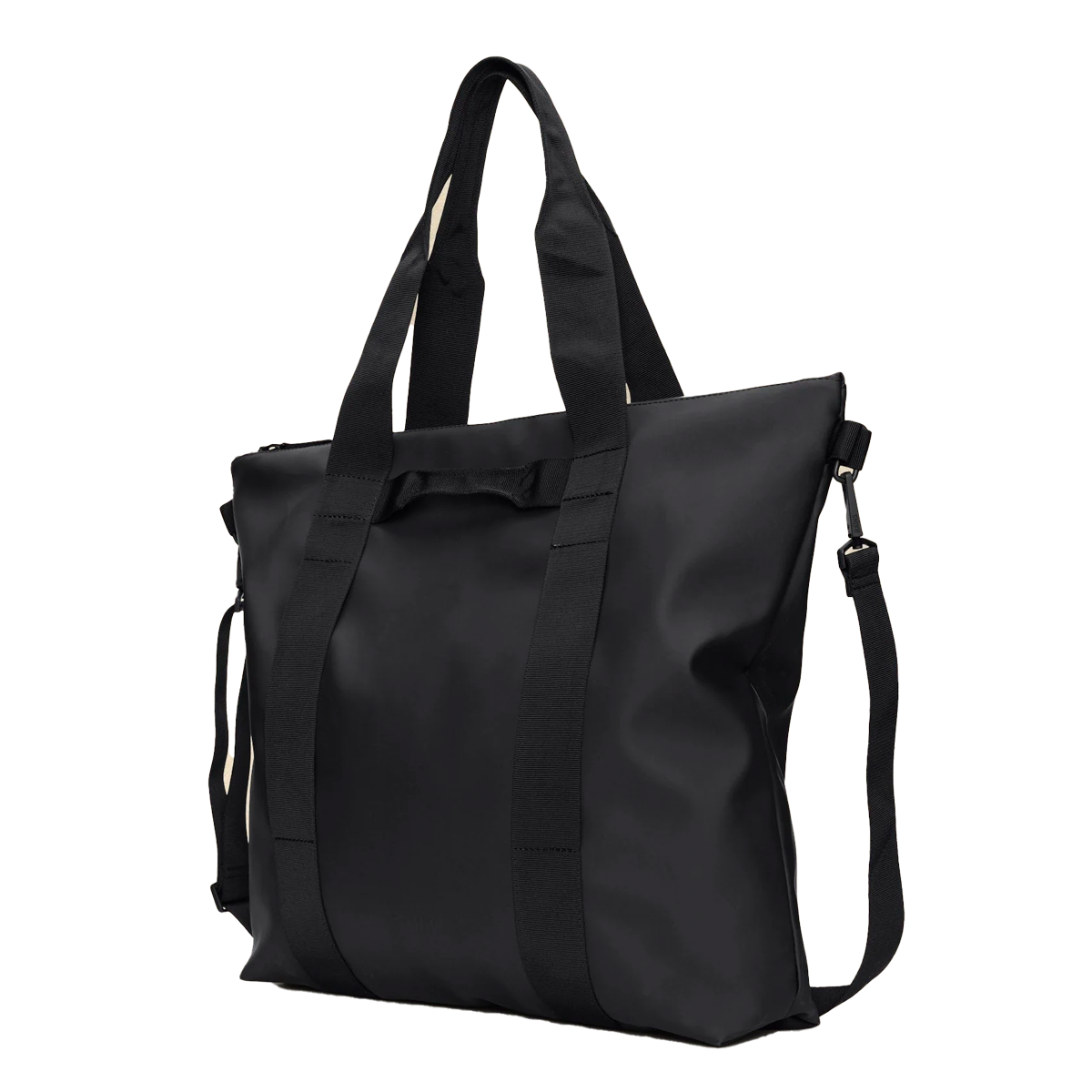The Rains Tote Bag is a waterproof tote perfect for shopping, commutes, or the office. The design is punctuated by discreet functional details for an elevated utilitarian look. Open the full-length coated zip to reveal a spacious main compartment and zip pocket. Tote Bag offers various carrying options through its detachable shoulder strap, long hand/shoulder handles, and side-mounted grab handle.